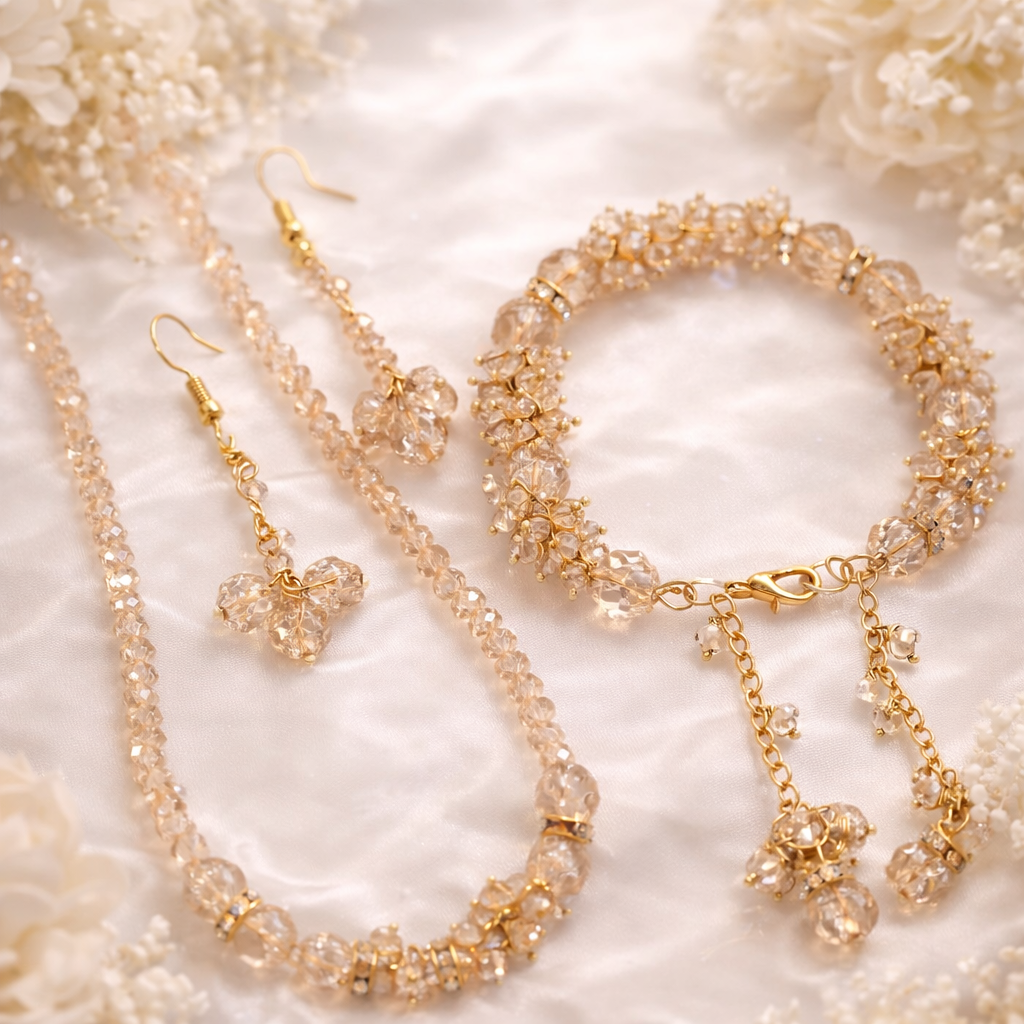 Golden Crystal Jewelry – Handmade Necklace, Earrings & Bracelet Set